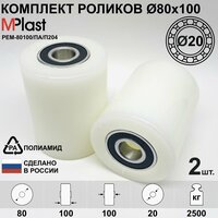 Купить Колеса (подвилочный ролик) 80х100/20 мм, 2 шт, полиамид/нейлон, для гидравлической тележки рохля с доставкой по всей России.