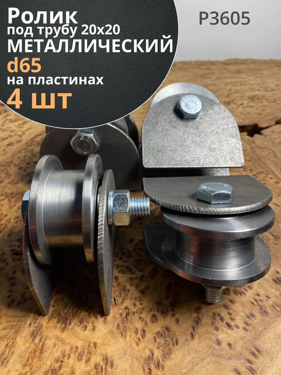 Ролик на пластинах d 65 мм, под трубу 20х20, металл 4 шт. - это высококачественный аксессуар для ворот, который обеспечивает плавное и бесшумное движение створок.
