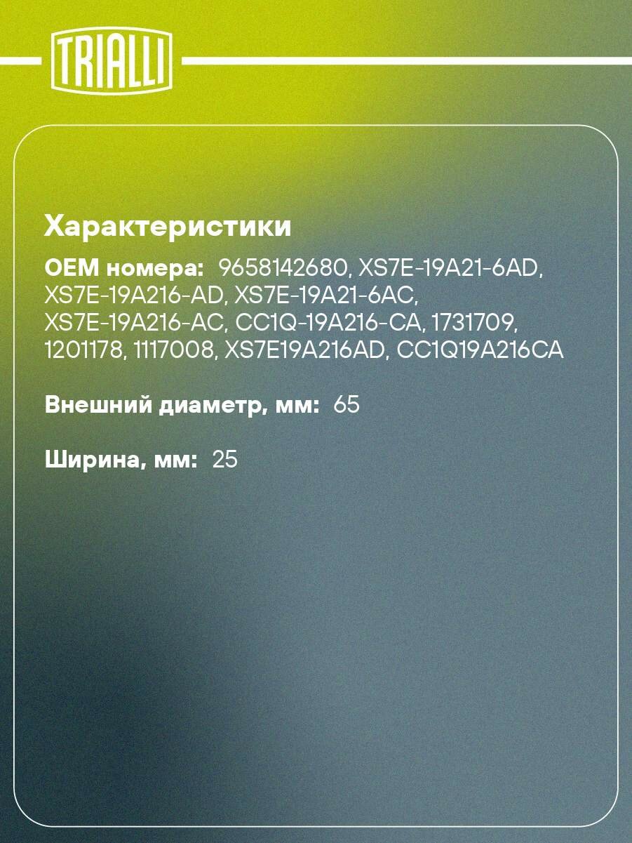 Купить Ролик привод. ремня для автомобилей Ford Transit (00-)/Transit (06-)/Transit (13-)/Peugeot Boxer (06-)/Citroen Jumper (06-) 2.0TDCi/2.2TDCi (опорный) гладкий (25×65) (CM 1011) CM 1011 TRIALLI с доставкой по всей России. Ролик привод. ремня для автомобилей Ford Transit (00-)/Transit (06-)/Transit (13-)/Peugeot Boxer (06-)/Citroen Jumper (06-) 2.0TDCi/2.2TDCi (опорный) гладкий (25×65) (CM 1011) CM 1011 TRIALLI: сравнение цен, характеристики, фото, актуальное наличие и цены.
