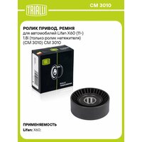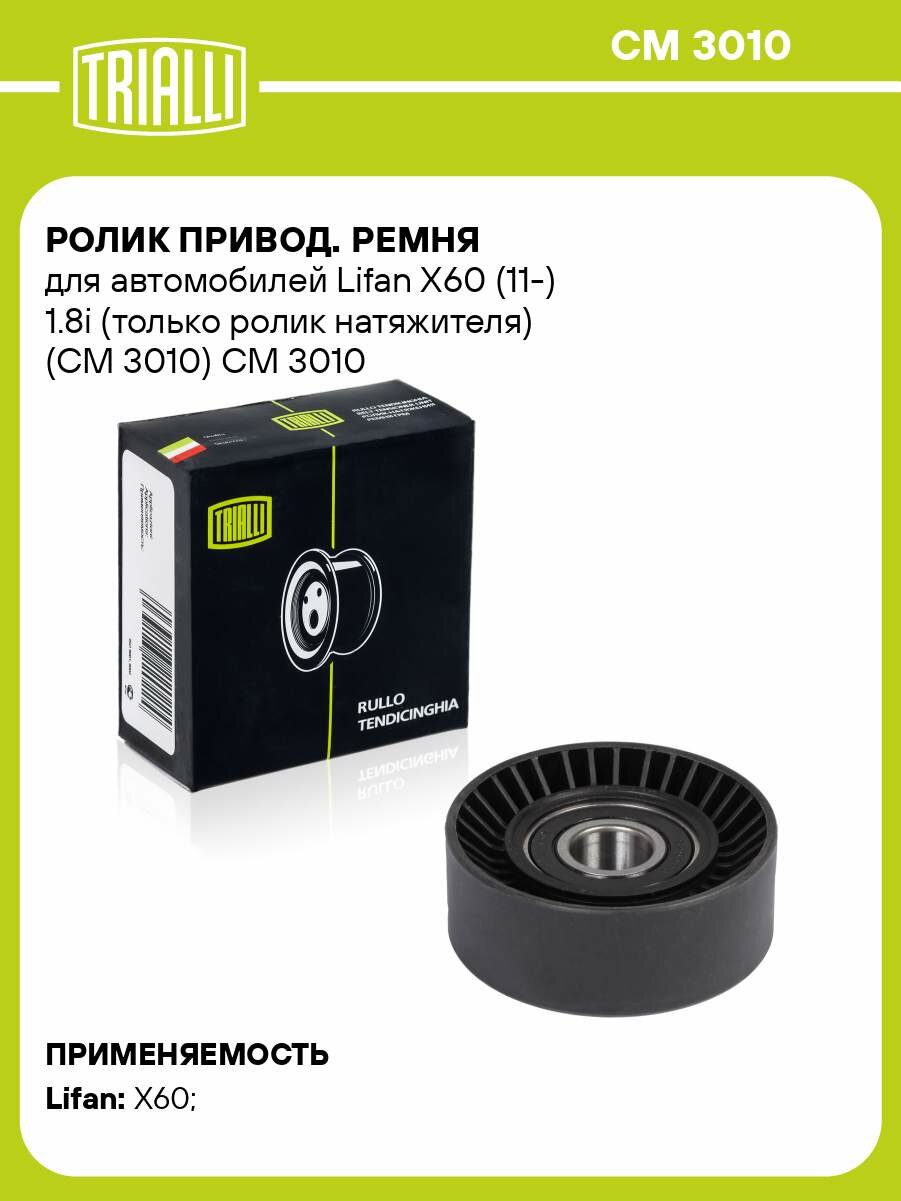 Ролик привод. ремня для автомобилей Lifan X60 (11-) 1.8i (только ролик натяжителя) (CM 3010) CM 3010 TRIALLI: сравнение цен, характеристики, фото, актуальное наличие и цены.