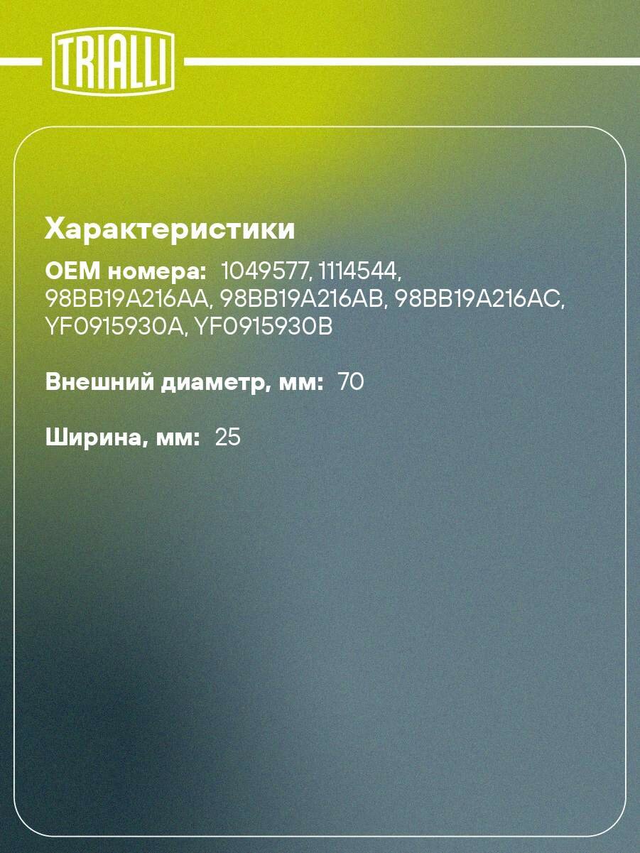 Ролик приводного ремня для автомобилей Ford Focus I (98-) 1.6i/1.8i/2.0i Zetec-E (опорный) h25,5 CM 5099 TRIALLI: сравнение цен, характеристики, фото, актуальное наличие и цены.