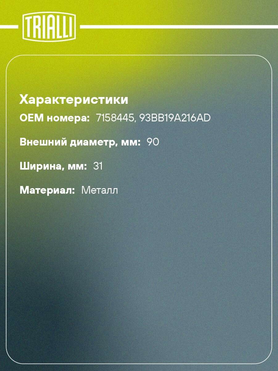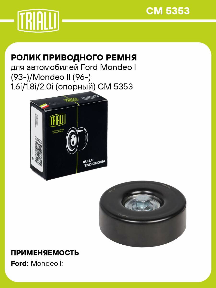 Ролик приводного ремня для автомобилей Ford Mondeo I (93-)/Mondeo II (96-) 1.6i/1.8i/2.0i (опорный) CM 5353 TRIALLI: сравнение цен, характеристики, фото, актуальное наличие и цены.