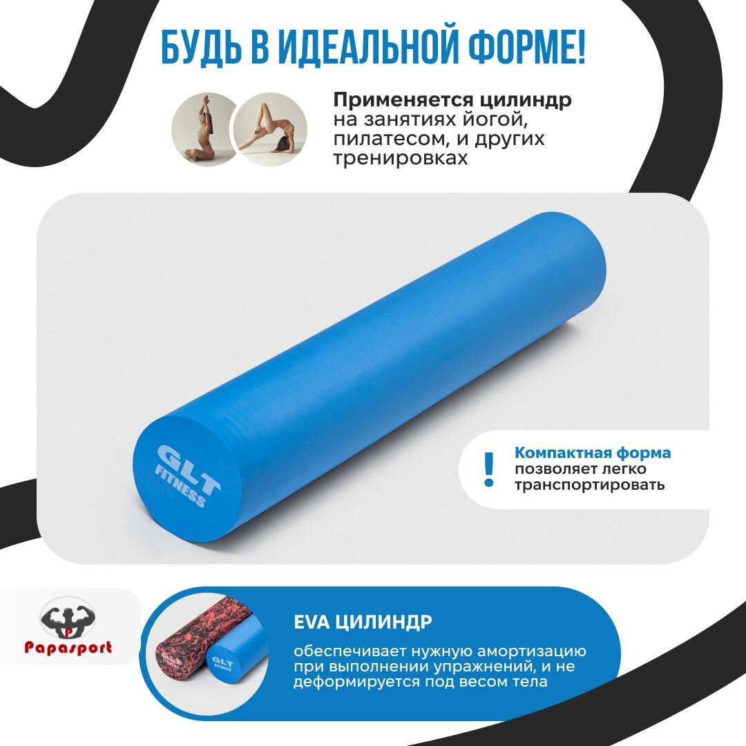 Купить Ролик (Роллер) для пилатеса GLT, плотный, гладкий, 90 см х 15 см, EVA, цвет синий с доставкой по всей России.