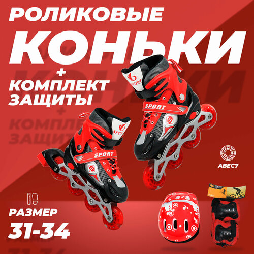 Ролики детские 31-34 раздвижные, ABEC7, для девочки, для мальчика, защита в комплекте, красные, TOPEMOUNT: сравнение цен, характеристики, фото, актуальное наличие и цены.