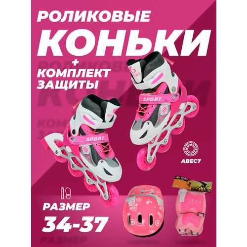 Ролики детские 34-37 раздвижные, ABEC7, для девочки, для мальчика, защита в комплекте, розовые, TOPEMOUNT: сравнение цен, характеристики, фото, актуальное наличие и цены.