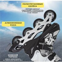 Купить ролики для лета и ледовые коньки для зимы получается накладно для кошелька. Модель BIG BRO - выход из сложившейся ситуации, ведь она сочетает в себе шоссейные ролики и ледовые коньки. Ботинок выполнен из дышащего и прочного текстиля. Пластиковый каркас ботинка защищает ногу от травм и поддерживает голеностоп благодаря жесткому корпусу. Мягкий внутренний ботинок выводит влагу летом, а зимой сохраняет тепло и не даёт ногам замерзнуть. Благодаря использованию современных материалов, коньки-ролики отличаются повышенной прочностью и высокими эксплуатационными свойствами. Можно не бояться, что в следующем сезоне своими коньками уже не воспользоваться, ведь раздвижной механизм на 4 размера решит эту проблему. Для этого необходимо нажатие всего лишь на одну кнопку. Лезвие из нержавеющей стали имеет заводскую заточку. Ролики обладают шустрыми подшипниками, обеспечивающие хороший накат. Модель предназначена для любительского катания. Выбирайте ролики-коньки 2 в 1 и катайтесь с ветерком несмотря на сезон! Характеристики: Бренд: BIG BRO Особенность: 2 в 1 Возрастная категория: универсальная Уровень: любительский Материал ботинка: нейлон, пластик Подкладка: текстиль Материал стельки: EVA Лезвие: хоккейное, нержавеющая сталь Тип фиксации: шнуровка, клипса с фиксатором, застежка-липучка Раздвижной механизм: 4 размера Цвет: черно-белый