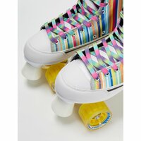 Модель, возвращающая своего обладателя в ретро-эпоху 70-80-х годов, когда ролики были на пике популярности Уникальный ретро-дизайн придает этой модели роликов вид стильной обуви Мягкие текстильные ботинки, ортопедическая стелька и система вентиляции создают комфорт для ног во время движения Высокая шнуровка обеспечивает оптимальную посадку обуви Мягкое рулевое управление позволяет легко и быстро входить в крутые повороты, более жесткая настройка обеспечивает устойчивость на длинной прямой Подшипники ABEC 7 и литые полиуретановые колеса обеспечивают хорошее сцепление с любой поверхностью Ударопрочное шасси, усиленные носок и пятка защищают ногу даже во время маневренного катания