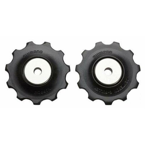 Ролики заднего переключателя серии Shimano 105 RD-5700, а также ко многим другим. Комплект роликов совместим с цепями на 9 и 10 скоростей, имеют диапазон зубьев 11Т и сравнительно небольшой диаметр. Совместимы как с актуальными сериями переключателей, так и со старыми моделями. Ролики выполнены из пластика, в комплекте поставляются со стальными пыльниками.
