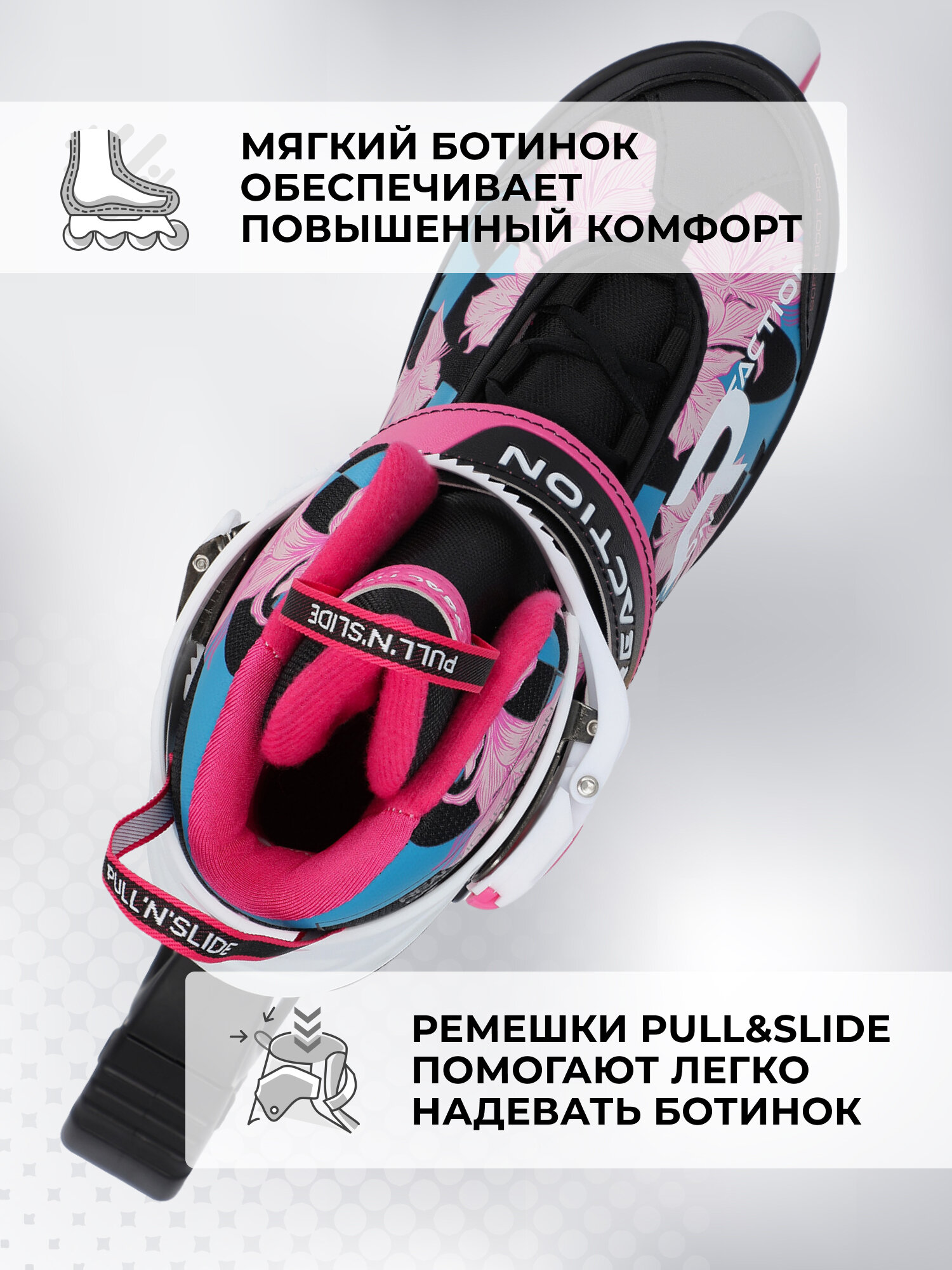 Роликовые коньки Reaction Rainbow станут отличным выбором для детей, желающих развить свои навыки катания. Эти коньки сочетают в себе надежность, долговечность и удобство благодаря алюминиевой раме и раздвижной конструкции, которая растет вместе с ребенком, предлагая 6 размеров в 1. Мягкий ботинок с анатомической поддержкой в области щиколотки и удобные ремешки для легкого надевания гарантируют комфорт даже во время длительного катания. Скорость обеспечивается подшипниками ABEC 5, а плавность хода — полиуретановыми колесами с жесткостью 82А. Ремень на липучке и надежные шнурки в сочетании с простой клипсой обеспечивают безопасное и плотное прилегание к ноге, что особенно важно для активных детей.