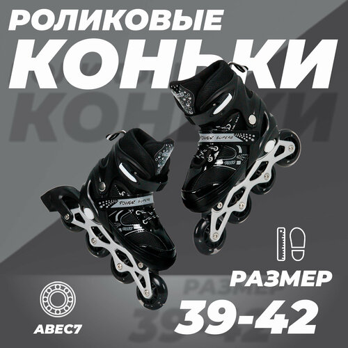 Купить Роликовые коньки 39-42 раздвижные, ABEC7, для девочки, для мальчика, колеса полиуретан, черные, TOPEMOUNT с доставкой по всей России.