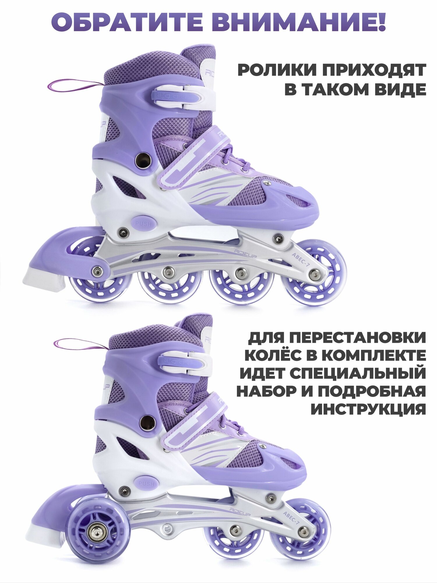 Роликовые коньки RIDEUP, раздвижные, детские, фиолетовые, диаметр колес 64мм: сравнение цен, характеристики, фото, актуальное наличие и цены.