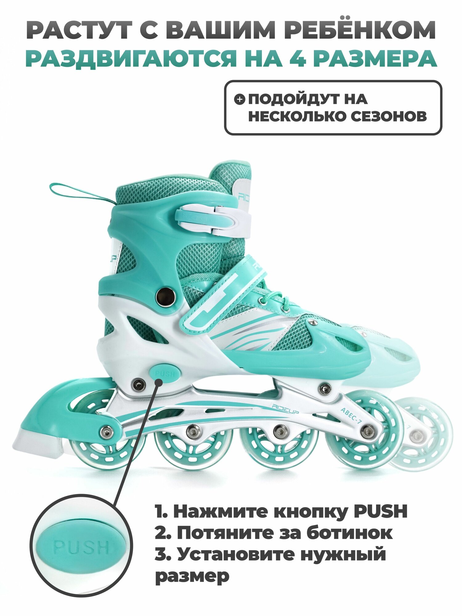 Купить Роликовые коньки RIDEUP, раздвижные, трансформеры, 4 колеса, бирюзовые с доставкой по всей России. Роликовые коньки RIDEUP, раздвижные, трансформеры, 4 колеса, бирюзовые: сравнение цен, характеристики, фото, актуальное наличие и цены.