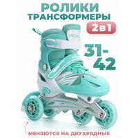 Универсальные детские роликовые коньки-трансформеры с удобной сумкой для переноски. Эта модель 2 в 1 имеет уникальную возможность трансформации: для начинающих два задних колеса можно установить по бокам, что делает обучение более безопасным и комфортным. По мере освоения катания колеса легко переставляются в стандартный ряд – все необходимые крепления включены в комплект. Коньки оснащены практичным раздвижным механизмом, который позволяет регулировать размер простым нажатием кнопки. Это гарантирует, что ролики прослужат несколько сезонов, адаптируясь к растущей ноге ребенка. Технические характеристики: Прочная алюминиевая рама обеспечивает легкость и надежность конструкции Полиуретановые колеса обеспечивают тихое и комфортное катание Тройной крепеж (шнурки, клипсы, липучка) гарантирует надежную фиксацию Предназначены для катания по твердым ровным поверхностям Размеры: S: 31-34 размеры M: 35-38 размеры L: 39-42 размеры В комплекте: Ролики-трансформеры Сумка для переноски Набор инструментов для трансформации Этот спортивный набор не только подарит ребенку радость активного отдыха, но и поможет укрепить здоровье через физическую активность. Коньки станут отличным подарком для любого праздника или просто проявлением заботы о развитии ребенка.