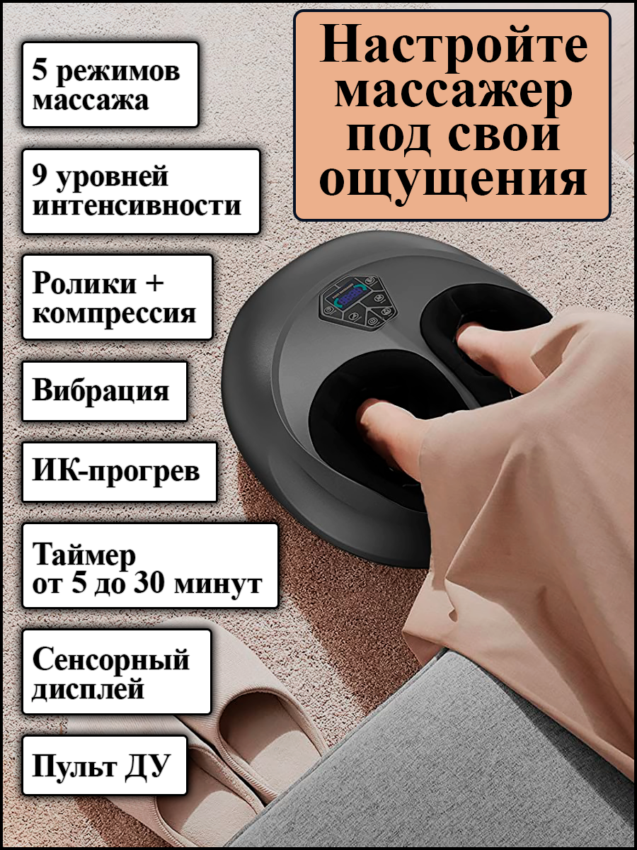 Роликовый массажер для ног с компрессией всей стопы и вибрацией (черный): сравнение цен, характеристики, фото, актуальное наличие и цены.