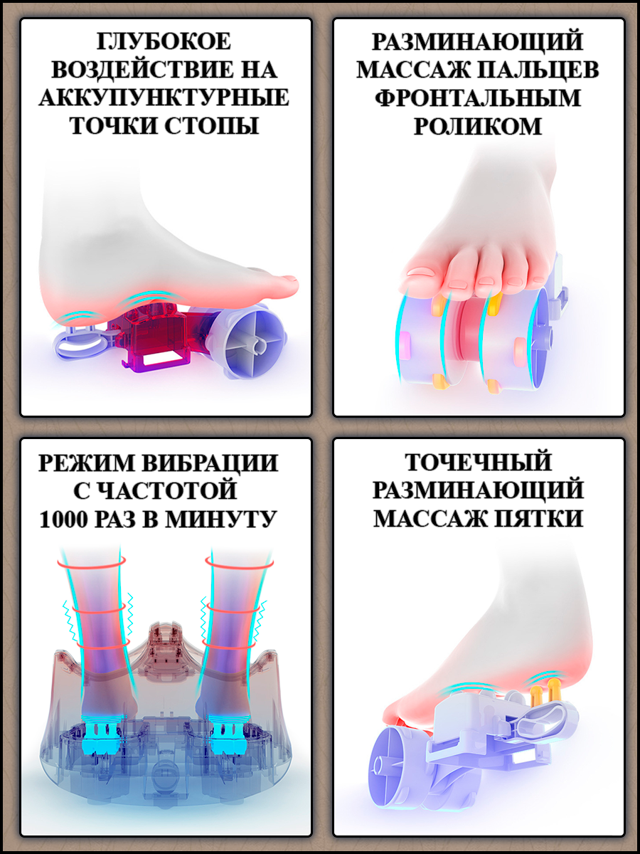 | Зона массажа | ладони, лодыжки, ноги, пальцы, пятки, руки, стопы |
