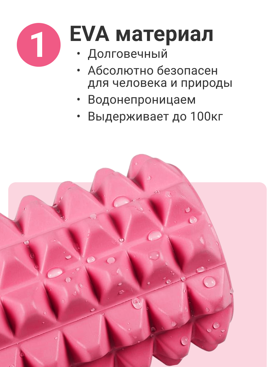Водонепроницаемый, не впитывает запахи. Выдерживает вес тела человека до 100 кг. Валик для фитнеса имеет комбинированную конструкцию, полую внутри,