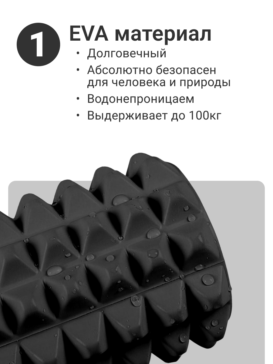 Водонепроницаемый, не впитывает запахи. Выдерживает вес тела человека до 100 кг. Валик для фитнеса имеет комбинированную конструкцию, полую внутри.