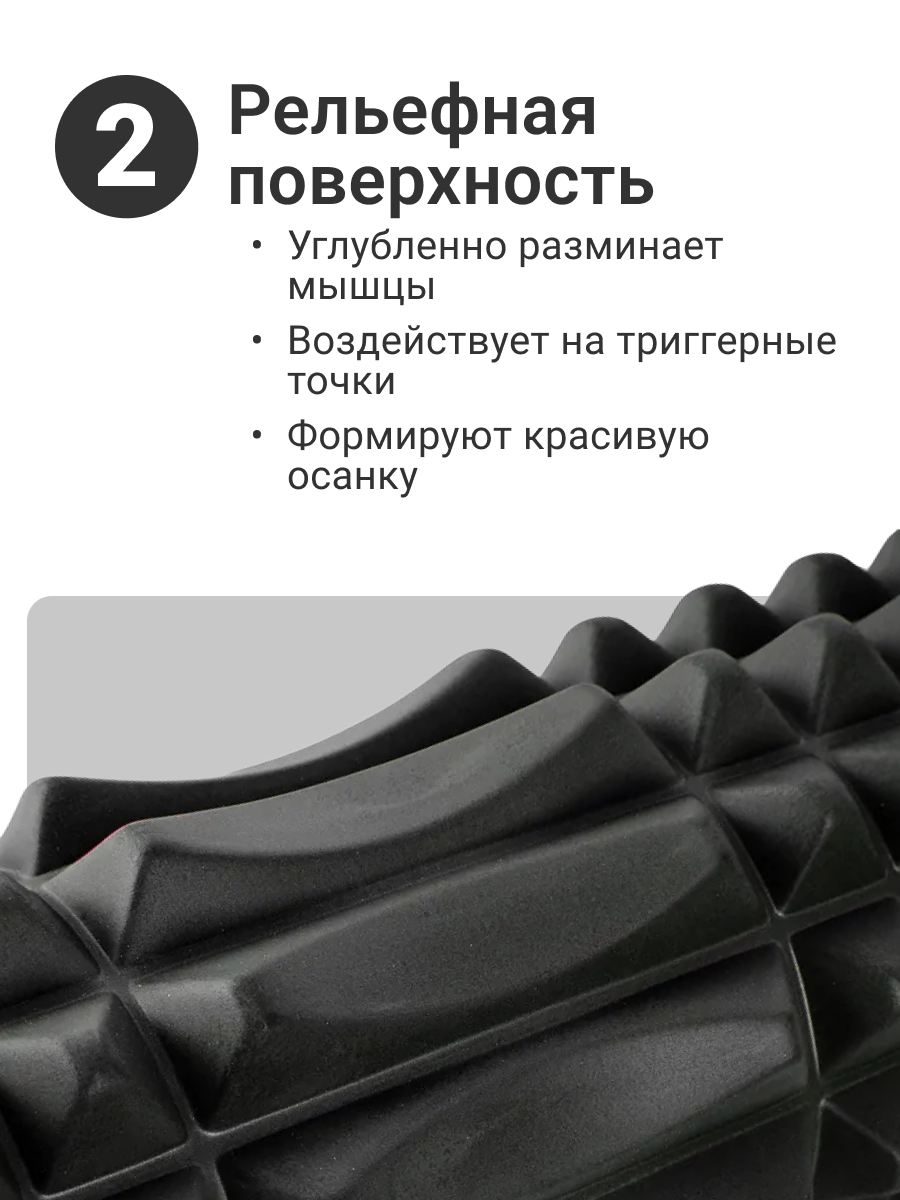 Валик предназначен для занятий спортом и массажа необходимых мышечных групп до и после тренировки. Роллер массажный большой ZDK удобен в использовании и активно воздействует на мышечные ткани и прослужит долго. Он используется спортсменами и любителями фитнеса для массажа крупных мышц (квадрицепсов, широчайших, поясничных и т. д.). Специально спроектированные шипы дадут эффект посещения профессионального массажиста. Используйте его для массажа спины, поясницы, шеи и ног. Особая «матричная» поверхность воспроизводит различные виды воздействия, применяемые в массаже: кончиками пальцев, фалангами или ладонями.