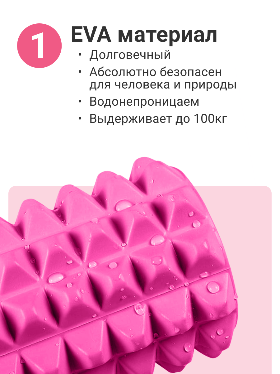 Водонепроницаемый, не впитывает запахи. Выдерживает вес тела человека до 100 кг. Валик для фитнеса имеет комбинированную конструкцию, полую внутри.