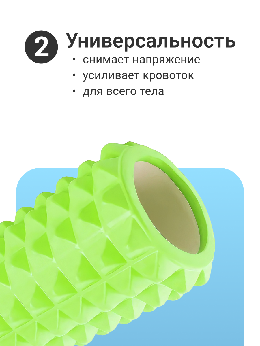 Массажный ролик ZDK Roll/green ZDKRoll/green – идеальное решение для людей, заботящихся о своем здоровье. Поможет вашему телу расслабиться после тяжелого дня. Отлично подходит для пилатеса, йоги или растяжки. Упражнения с ним просты, эффективны и идеальны для любого уровня подготовки. Он используется спортсменами и любителями фитнеса для массажа крупных мышц (квадрицепсов, широчайших, поясничных и т. д.). Специально спроектированные шипы дадут эффект посещения профессионального массажиста. Используйте его для массажа спины, поясницы, шеи и ног. Особая «матричная» поверхность воспроизводит различные виды воздействия, применяемые в массаже: кончиками пальцев, фалангами или ладонями. Его удобно брать с собой в поездки и можно использовать в фитнес-зале для групповых тренировок – он прослужит долго даже при усиленной эксплуатации. Анатомическая конструкция позволяет с комфортом выполнять упражнения, при этом валик не деформируется. Внутренний слой составляет прочную основу из АВС-пластика, внешний слой выполнен из комфортного материала ЭВА. Ролик водонепроницаемый и не впитывает запахи. Выдерживает вес тела человека до 100 кг. Имеет комбинированную конструкцию, полую внутри.