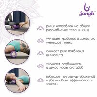 Роллер для йоги — спортивный инвентарь, который помогает настроить мышцы на работу перед тренировкой, удерживать правильное положение тела во время неё и ослабить боль в мышцах и суставах после. Параллельно способствует восстановлению всего организма. Ролик позволяет практиковать миофасциальное расслабление (МФР). Использование изделия становится доступной альтернативой массажной терапии.