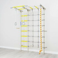 сетка для лазанья имеет возможность для установки как слева, так и справа от шведской стенки; маты в комплект не входят; количество перекладин: 8 штук; шаг: 24 см; длина перекладин: 41 см; вынос перекладин: 23 см
