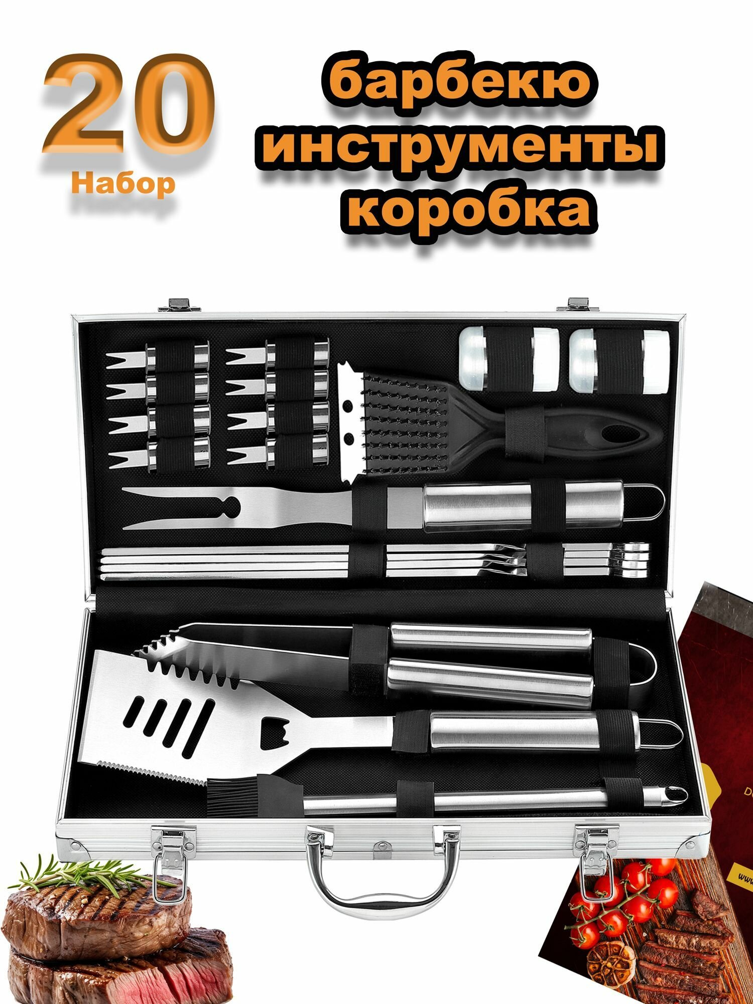 Romanticist 20шт Сверхмощный набор инструментов для приготовления барбекю-гриля в футляре: сравнение цен, характеристики, фото, актуальное наличие и цены.