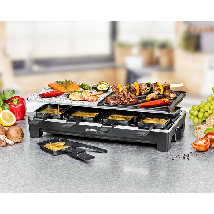 Rommelsbacher Гриль-раклетница Rommelsbacher RCS / 1350 Вт / на 8 человек / нержавеющая сталь / камень для гриля / антипригарное покрытие