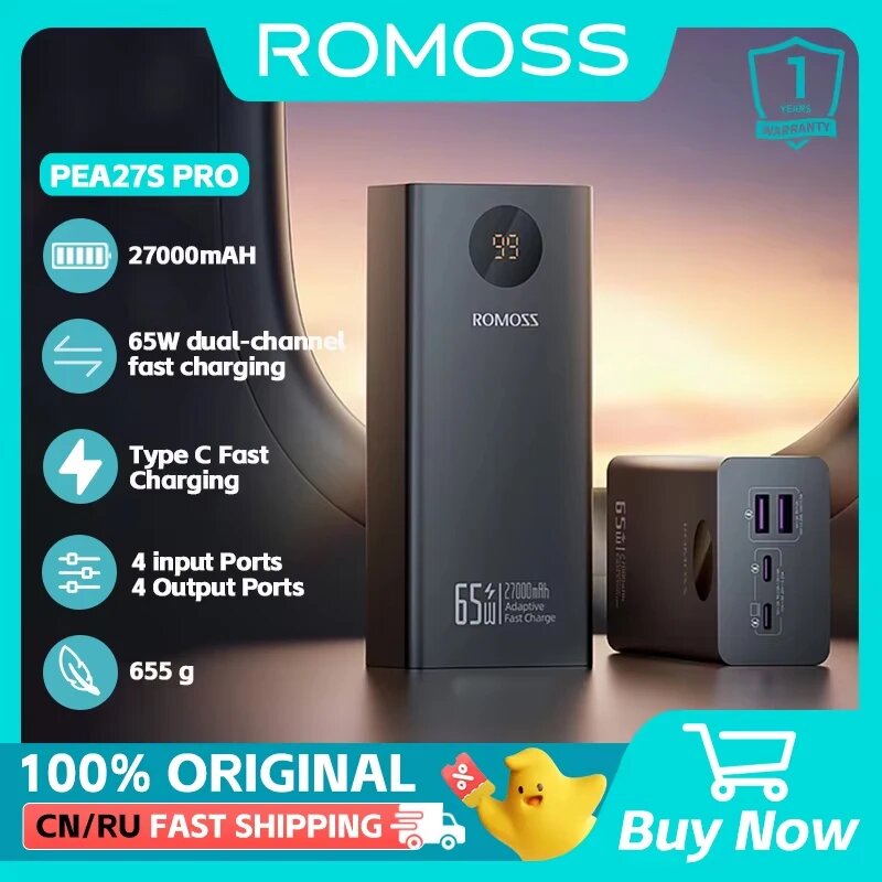 ROMOSS 27000 мАч Мощный внешний аккумулятор 65 Вт PD30W с быстрой зарядкой PEA27S pro для ноутбука Xiaomi 14 Xiaomi iphone 15: сравнение цен, характеристики, фото, актуальное наличие и цены.