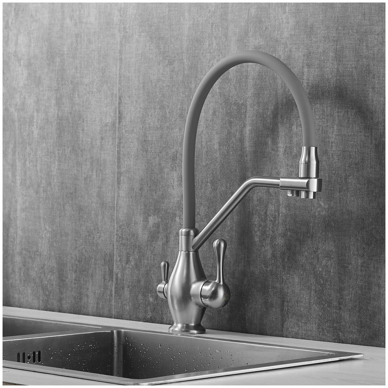 Купить Смеситель для кухни однорычажный с гибким изливом, с подключением фильтра Rose R858L, Сатин с доставкой по всей России.