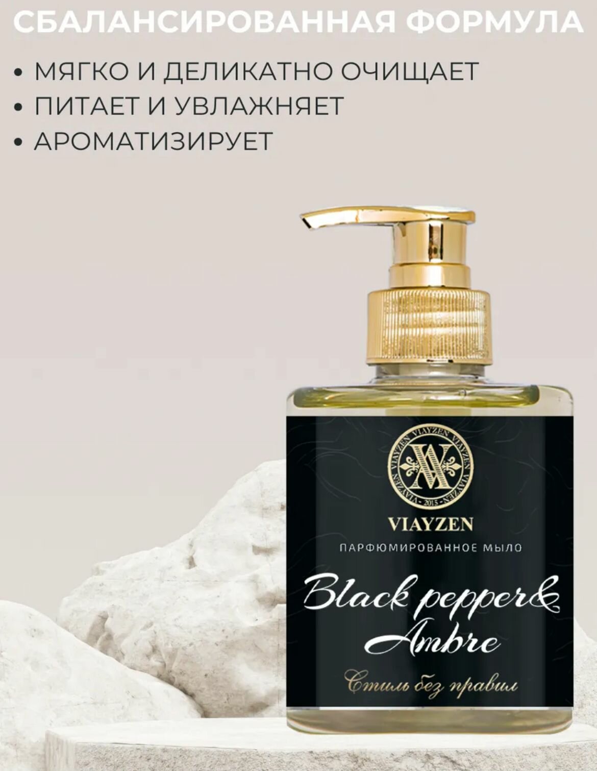 Элитное парфюмированное жидкое мыло для рук Black Pepper & Ambre от VIAYZEN – роскошный уход с шлейфом благородного аромата для женщин и мужчин