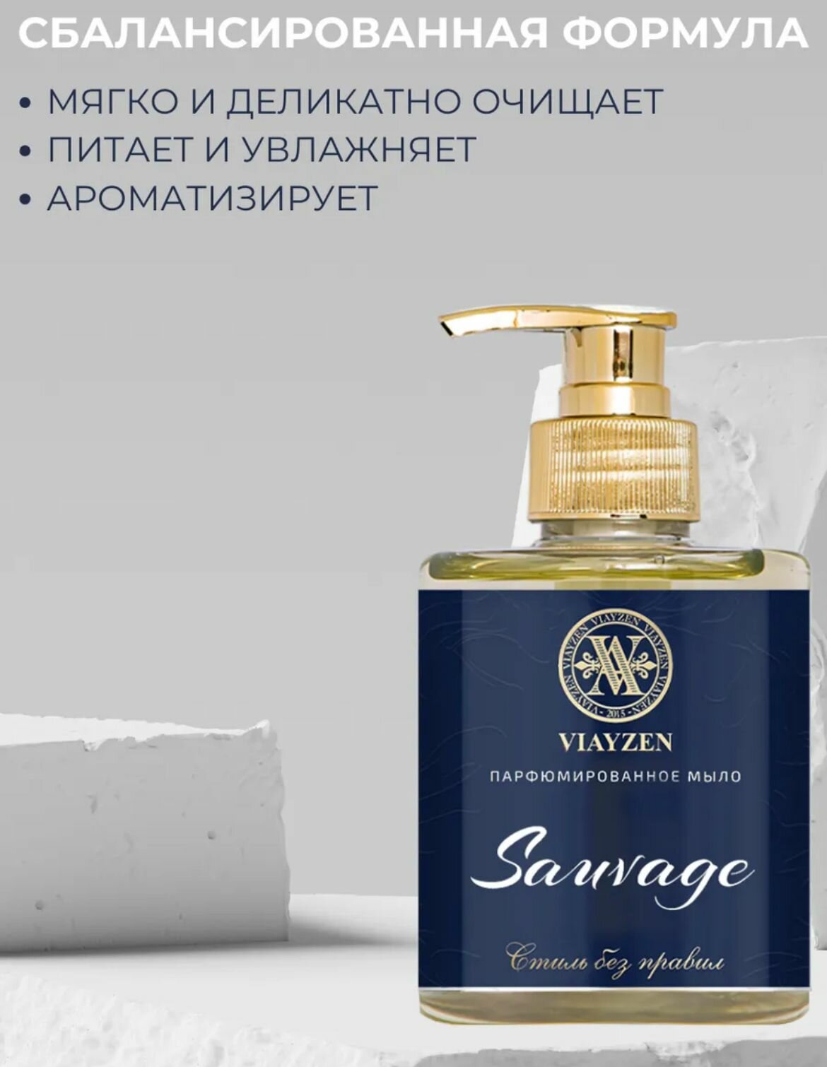 Элитное парфюмированное жидкое мыло для рук Sauvage (Саваж) от VIAYZEN – роскошный уход с шлейфом благородного аромата для мужчин