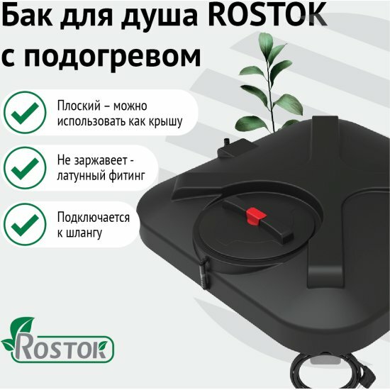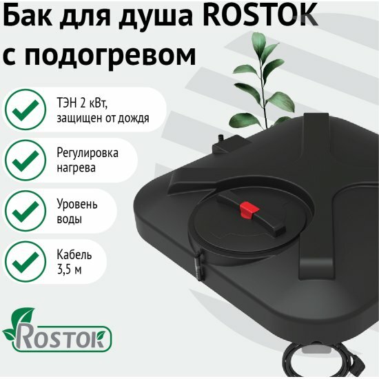 Наслаждайтесь теплым душем на даче с надежным баком “"Rostok"”. Современный пластиковый бак с системой подогрева - идеальное решение для комфортного летнего душа.