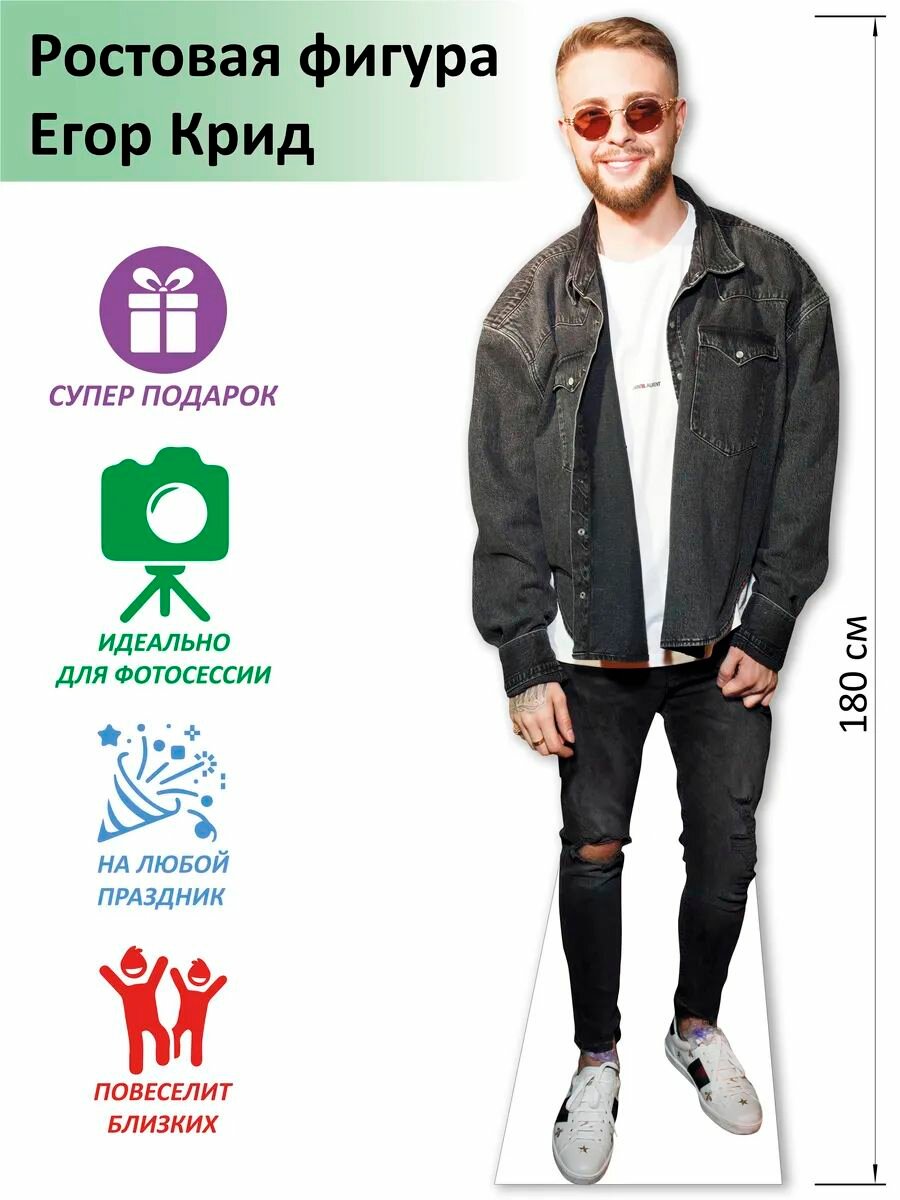 Ростовая фигура Егора Крида - это уникальный и оригинальный подарок, который станет отличным дополнением к любому празднику. Фигура выполнена из премиального картона с печатью высокого качества по лицу, что придает ей реалистичность и яркость.