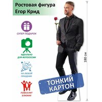 Ростовая фигура Егора Крида из картона - это уникальный и оригинальный подарок для любителей музыки и звезд шоу-бизнеса. Фигура выполнена в полный рост, достигающий 180 см, и имеет ширину 60 см.