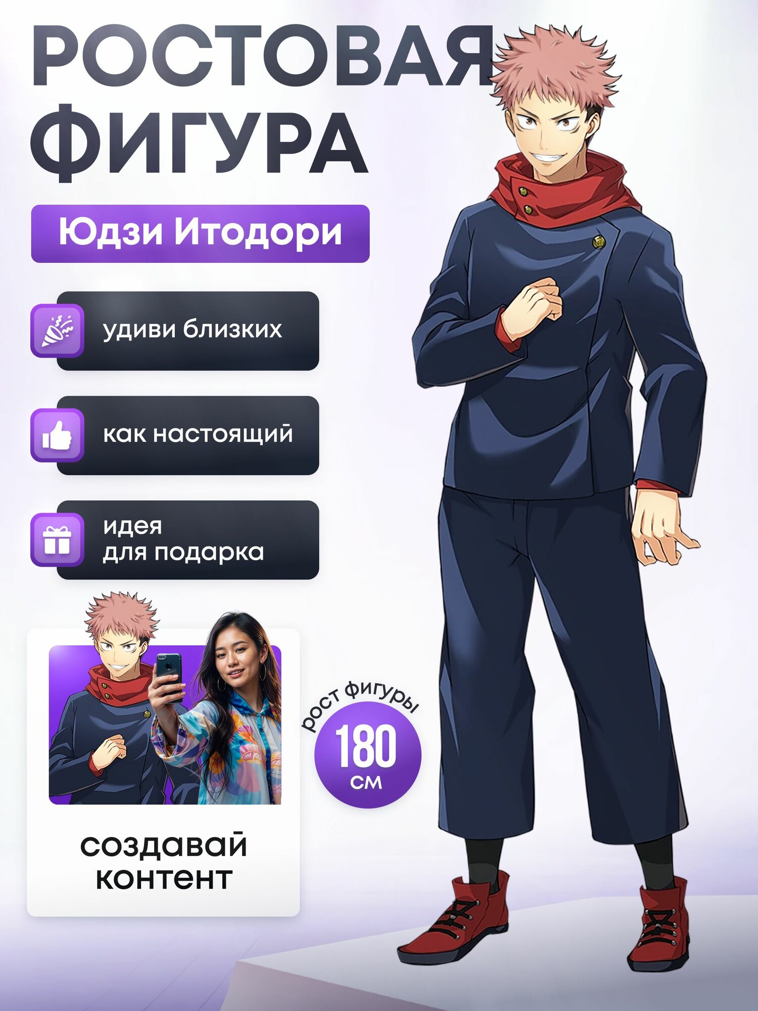 Купить Ростовая фигура Юдзи Итодори (Магическая битва) с доставкой по всей России. Ростовая фигура Юдзи Итодори (Магическая битва): сравнение цен, характеристики, фото, актуальное наличие и цены.