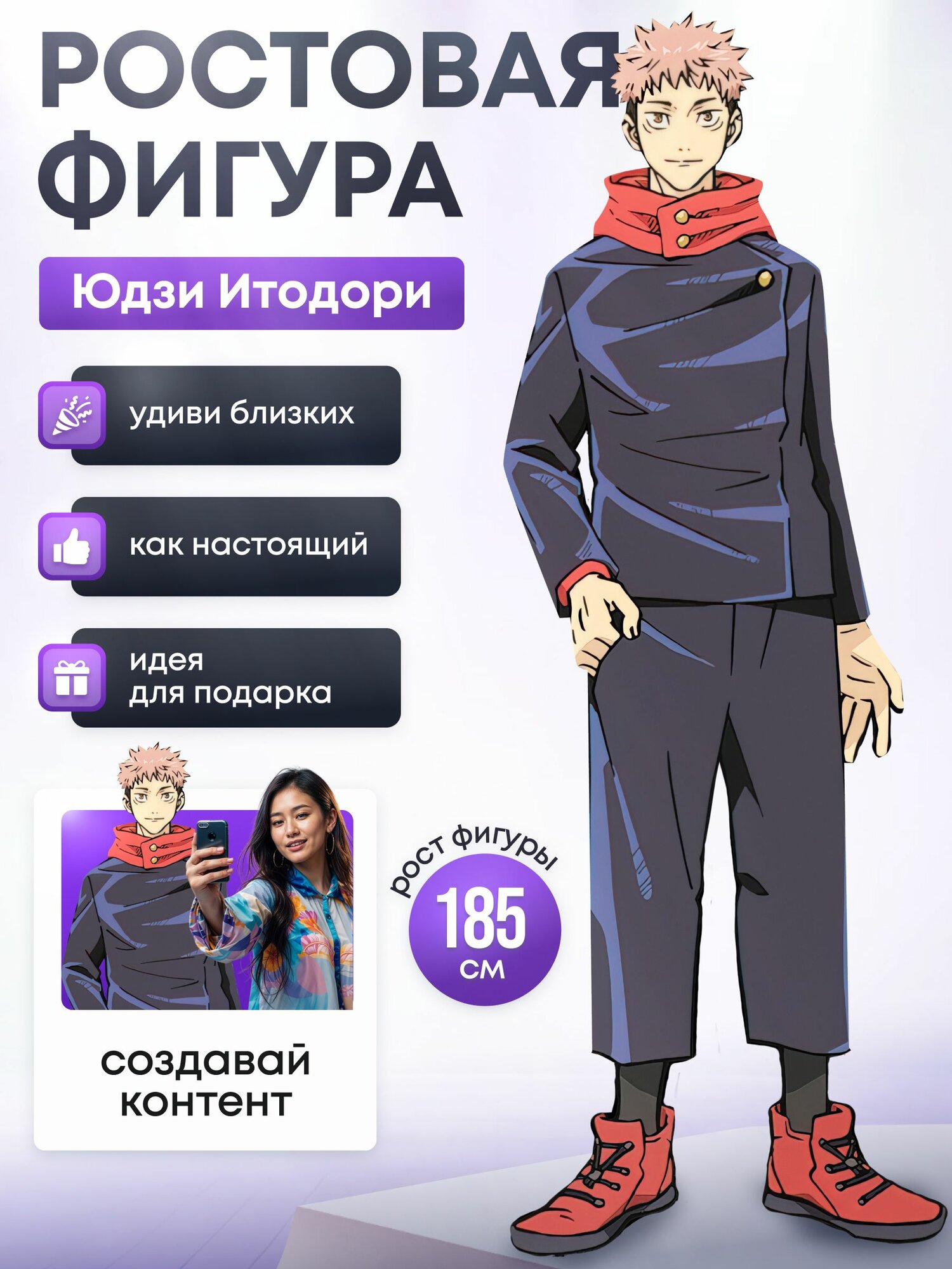 Купить Ростовая фигура Юдзи Итодори (Магическая битва) с доставкой по всей России. Ростовая фигура Юдзи Итодори (Магическая битва): сравнение цен, характеристики, фото, актуальное наличие и цены.