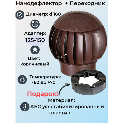 Ротационный нанодефлектор RAL 8017 (коричневый) в комплекте с переходником для труб диаметром 125-150 мм: сравнение цен, характеристики, фото, актуальное наличие и цены.