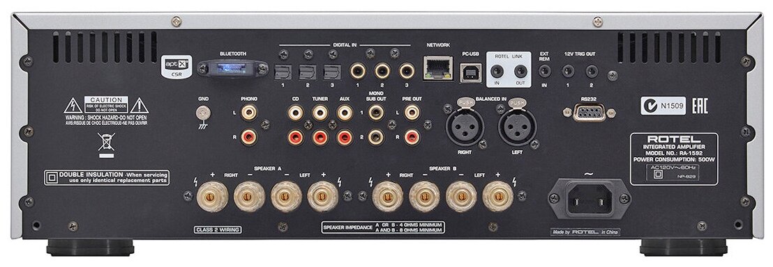 Ethernet - RJ-45, RS-232, USB Type-B, вход аудио линейный стерео, вход аудио линейный стерео x 3, вход аудио оптический, вход аудио оптический x 3, вход балансный линейный стерео, вход фонокорректора, выход Preamp, выход на сабвуфер, выход на сабвуфер x 2, выход триггер x 2