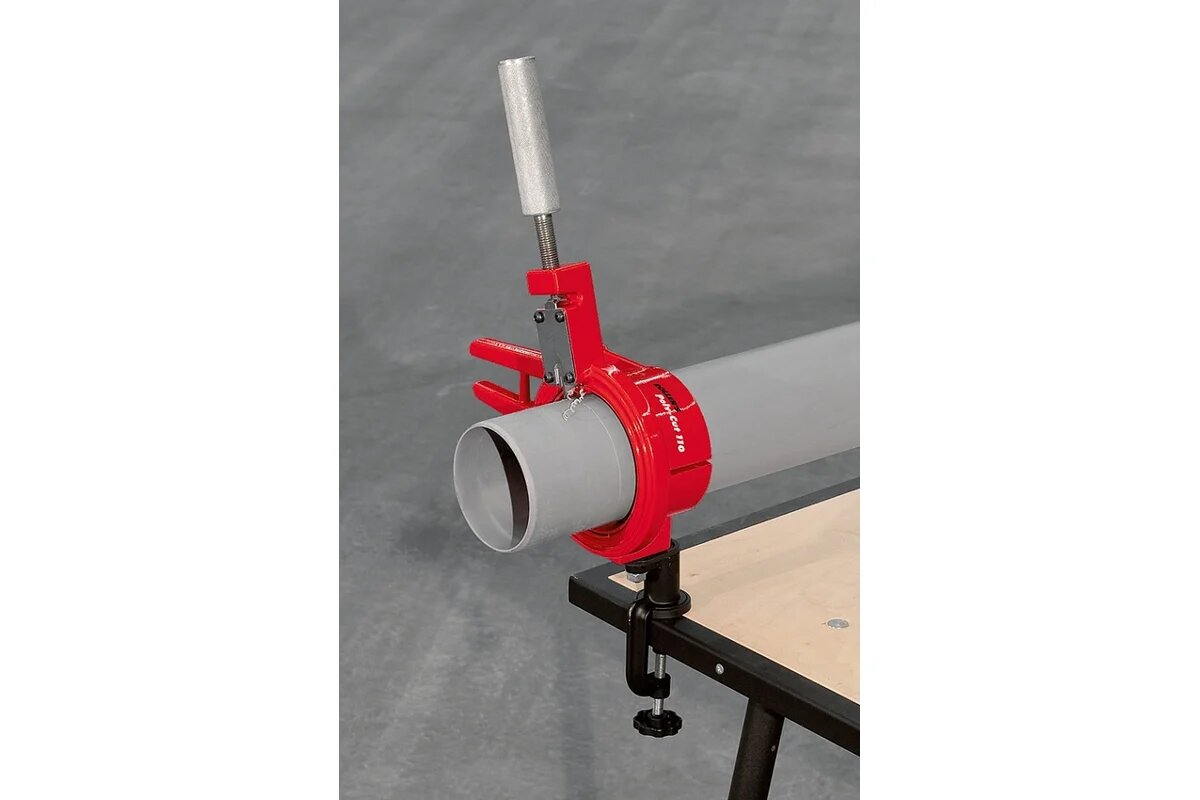 Труборез-фаскосниматель Rotorica CUT 110 RT.12142110 представляет собой универсальный инструмент для точной перпендикулярной резки и снятия фаски под углом 15° тонкостенных и толстостенных пластмассовых труб из ПВХ, ПЭ, ПП, PE-X, ПБ и ПВДФ, а также звукоизоляционных труб Ø 32–110 мм. Инструмент поставляется в комплекте с вкладышами 50, 63, 75 и 90 мм, а также со струбциной для крепления к верстаку.
