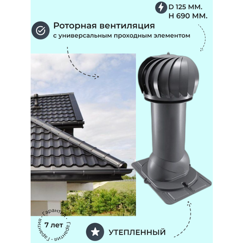 Роторный вентиляционный выход универсальный 150/125 мм, для кровли крыши из профнастила и металлочерепицы, утепленный, Viotto RAL 7024 серый: сравнение цен, характеристики, фото, актуальное наличие и цены.