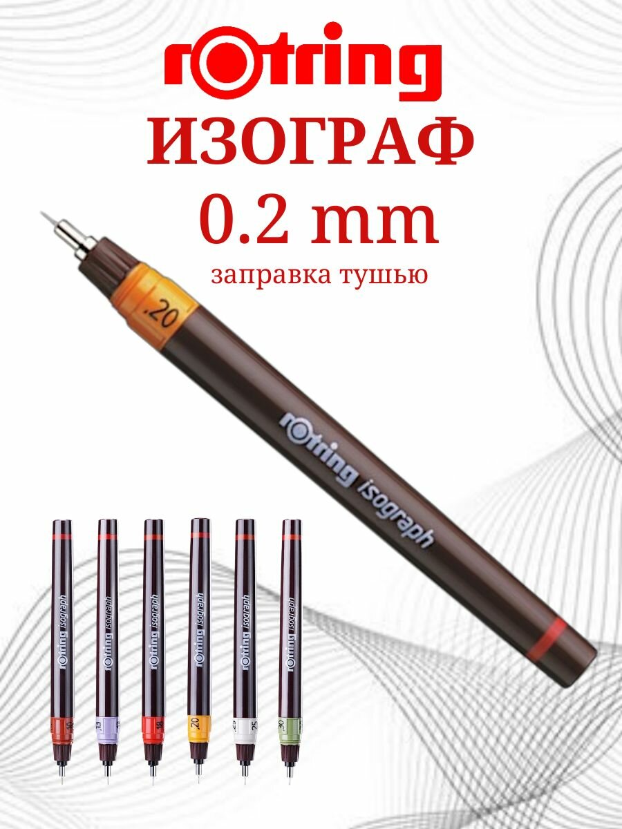 Изограф – вид рапидографов, способных писать под разными наклонами к поверхности. Изограф предназначен для черчения и рисования тушью на бумаге, ватмане и кальке. Толщина линии письма – 0,2 мм. Основные преимущества изографа Rotring: - система выравнивания давления; - чернильная спираль, являющаяся частью чернильного картриджа; Придётся по душе тем, кто любит рисовать гелевой ручкой, линером и тому подобными графическими инструментами. Изограф Rotring упакован в картонную коробку. Отличие между рапидографом и изографом состоит в том, что в рапидограф вставляется одноразовый картридж с тушью, а изограф имеет перезаряжаемый резервуар. • Толщина линии письма: 0,2 мм.