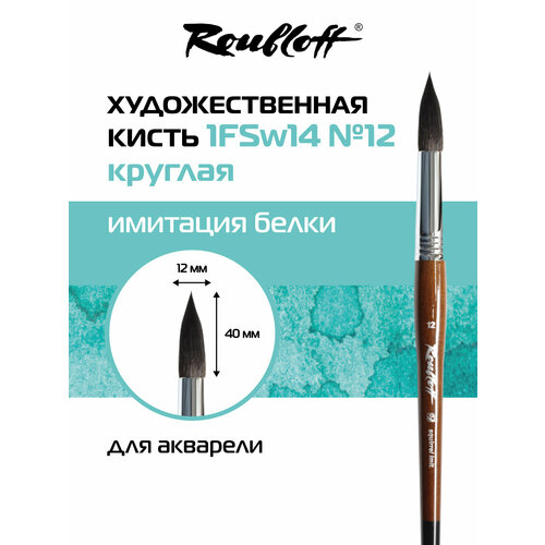 Roubloff Restyle 1FSw14 - профессиональная художественная кисть для рисования. Круглая кисть № 12 из уникального микса синтетики - имитация белки люкс - для акварельной живописи и иллюстрации.
