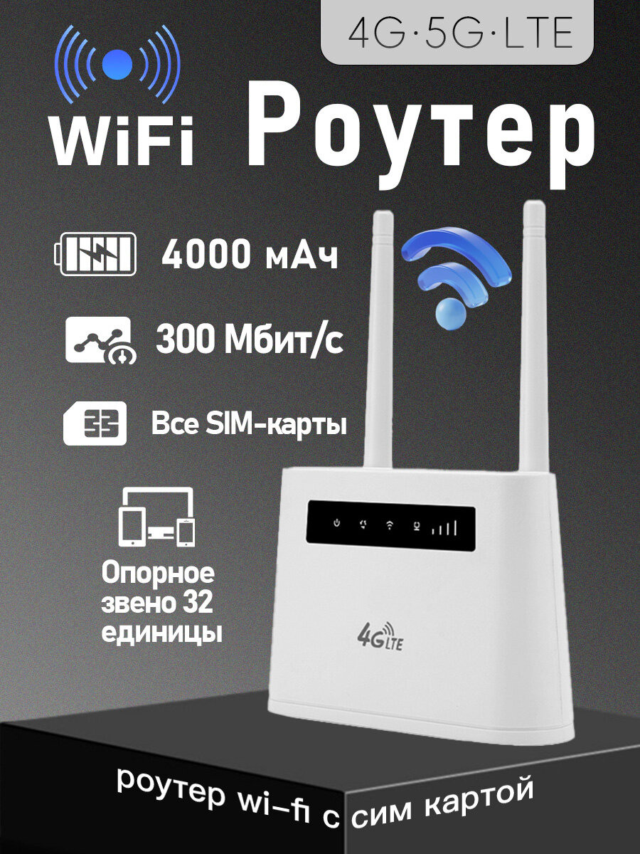 Роутер 4G, с SIM-картой, Wi-Fi, 2 антенны, 300 Мбит, 4000 мАч: сравнение цен, характеристики, фото, актуальное наличие и цены.