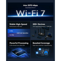 Благодаря поддержке современного стандарта Wi-Fi 7, роутер обеспечивает высокую скорость и эффективность. С этим устройством вы можете наслаждаться качественным сигналом в каждом углу вашего дома или офиса.