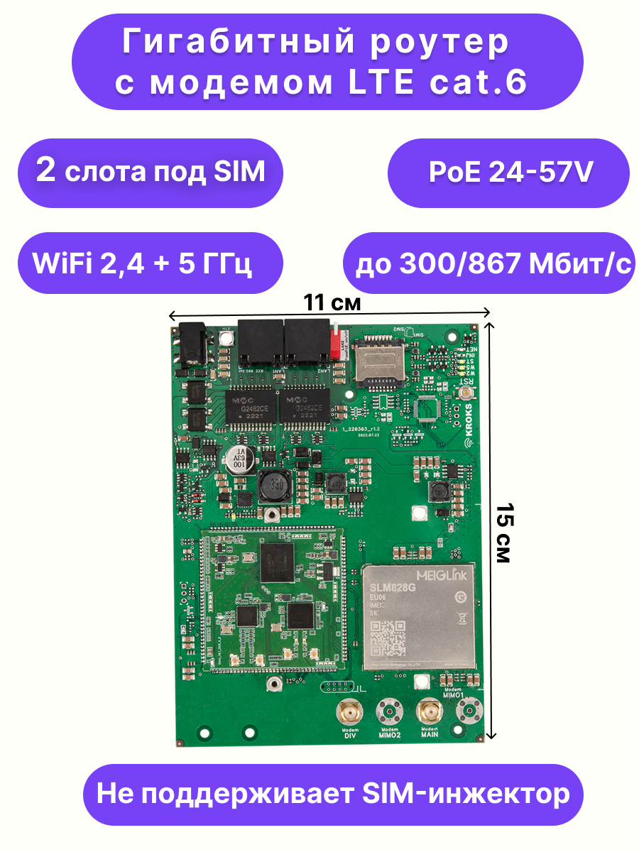 Роутер гигабитный с модемом LTE cat.6, для установки в гермобокс, KROKS Rt-Brd m6-G: сравнение цен, характеристики, фото, актуальное наличие и цены.