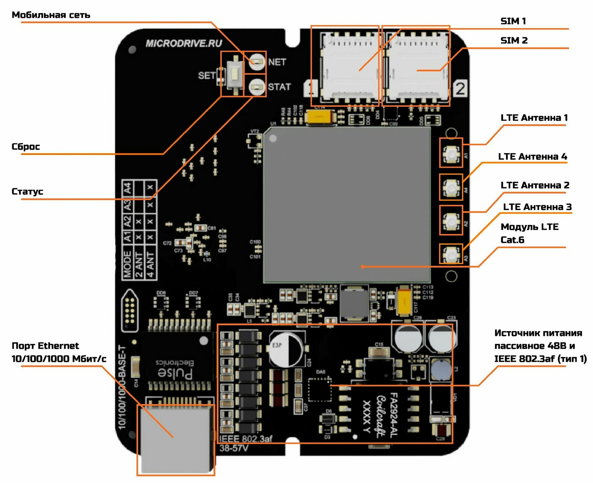 Роутер Microdrive Tandem-4G6-OEM-1 - 1шт Пигтейлы - 2шт