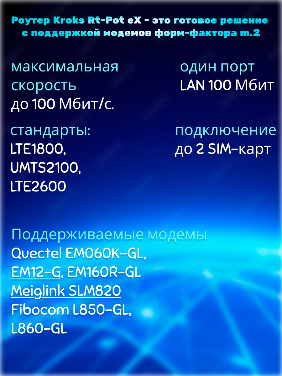 Купить Роутер с поддержкой m.2 модемов, KROKS Rt-Pot eX с доставкой по всей России. Роутер с поддержкой m.2 модемов, KROKS Rt-Pot eX: сравнение цен, характеристики, фото, актуальное наличие и цены.