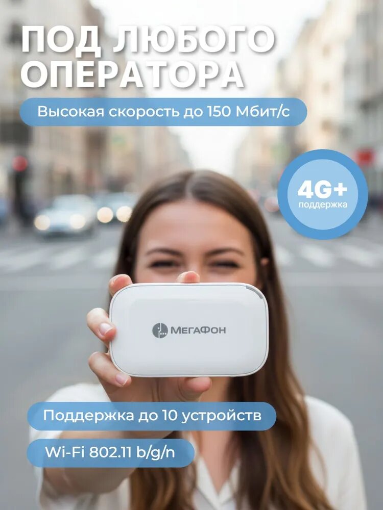 Роутер Wi-Fi мощный MR150-11 МегаФон - это удобное и компактное устройство, которое обеспечивает комфортный беспроводной доступ в интернет в любом месте. Роутер автоматически переключается между доступными сетями 4G/3G/2G, что позволяет использовать его с любым оператором. Основные характеристики роутера включают: - 4G+ FDD: 2600/1800/900/800 МГц; 3G: 2100/900 МГц; - Скорость приема данных роутером до 150 Мбит/с, передачи - до 50 Мбит/с; - Беспроводной роутер 2,4 ГГц на 10 устройств Wi-Fi 802.11 b/g/n; - Поддержка карт microSD до 32 ГБ; - Аккумуляторная батарея 2300 мА*ч, время работы (LTE) до 8 ч; - Размеры устройства 88 x 56 x 15 мм; - Разъем Type-C Роутер выполнен в белом цвете и имеет одну внутреннюю антенну. Материал изделия - металл и пластик. Важно отметить, что поддержка технологии MU-MIMO отсутствует, а подключение 3G/4G модема не предусмотрено. В целом, роутер Wi-Fi мощный MR150-11 МегаФон - это надежное и функциональное решение для обеспечения стабильного беспроводного доступа в интернет в любом месте.
