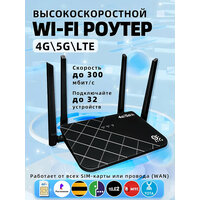 Купить Роутер wifi с cим картой; 4g wifi с сим; 4 антенны, поддержка сетей 4G, LTE, 5G, черный с доставкой по всей России.